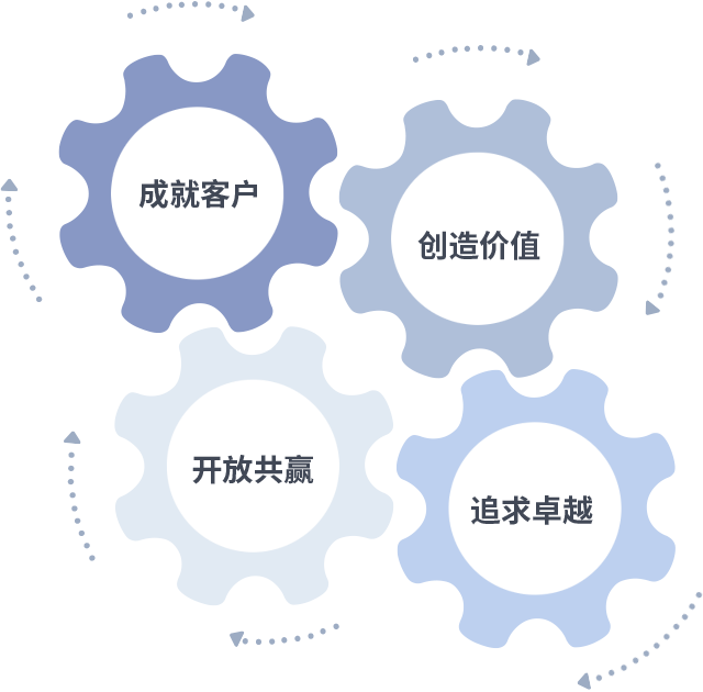成就客户是一切决策的出发点,创造价值是衡量所有工作的标准,追求卓越是六合联盟做事做人的态度,开放共赢是六合联盟的格局也是最终的结果。价值观的齿轮环环相扣,推动着组织里的每个人不断向前。